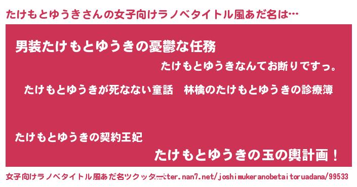 | ヘコむあだ名 | 『たけもとゆうき(笑)』『たけふぇ~』 |