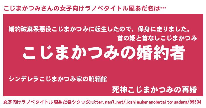 | 胡散臭い通販商品みたいなあだ名 | 『運命の人と巡り会える高級そうな壺…その名も「こじまかつみ」』 |