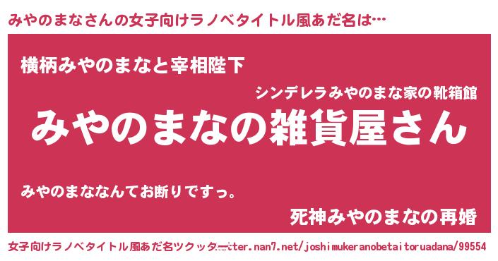 | 男性向けラノベタイトル風あだ名 | 『やはりみやのまなの青春ラブコメはまちがっている 』 |