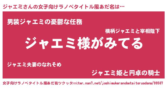 | 男性向けラノベタイトル風あだ名 | 『ジャエミの嫁は女の子じゃないと思った?』 |