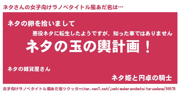 | 男性向けラノベタイトル風あだ名 | 『転生したらネタだった件』 |