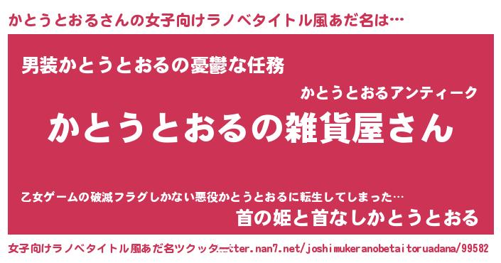| 男性向けラノベタイトル風あだ名 | 『やはりかとうとおるの青春ラブコメはまちがっている 』 |