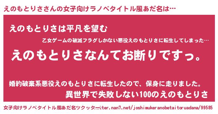 | 男性向けラノベタイトル風あだ名 | 『魔法科高校のえのもとりさ』 |