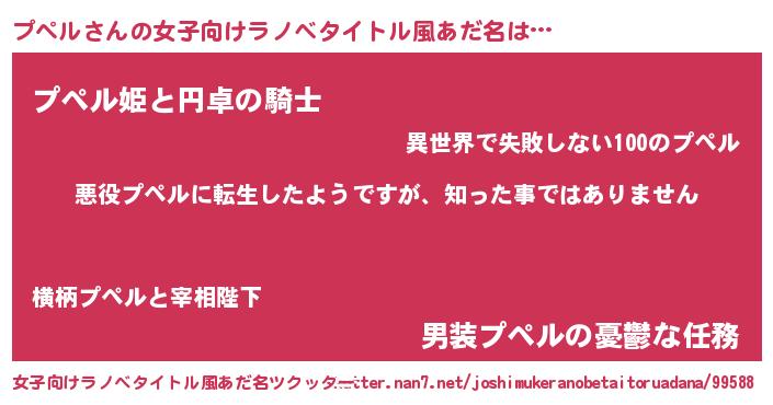| ヘコむあだ名 | 『プペふぇ~』『プペル(小並感)』 |