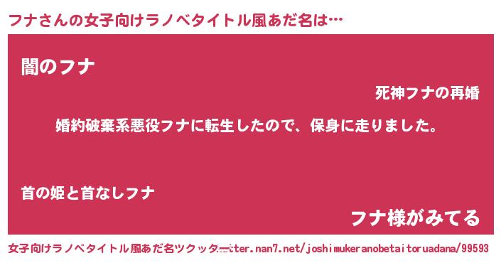 | ヒーロー風カッコイイあだ名 | 『超時空戦士フナ』『炎刃騎士フナ』 |