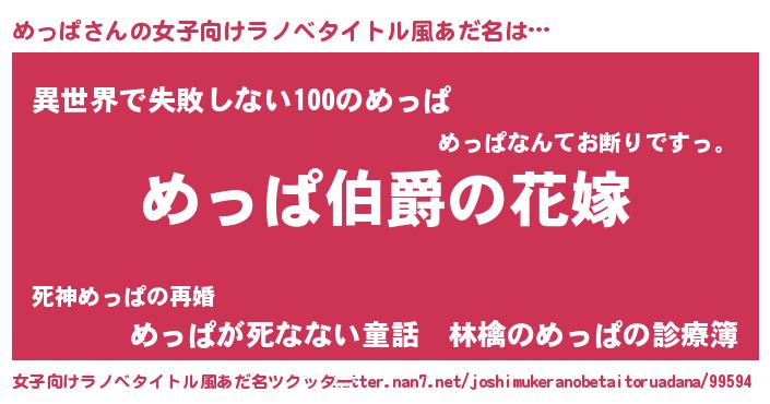 | 男性向けラノベタイトル風あだ名 | 『やはりめっぱの青春ラブコメはまちがっている 』 |