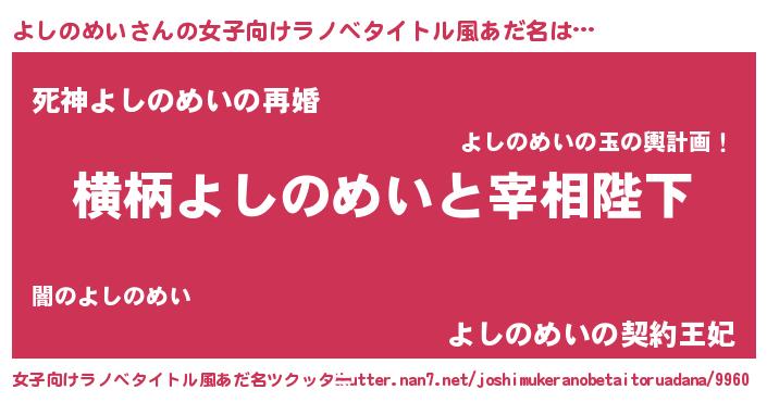 | 男性向けラノベタイトル風あだ名 | 『よしのめいに滅ぼされるだけの簡単なお仕事です』 |