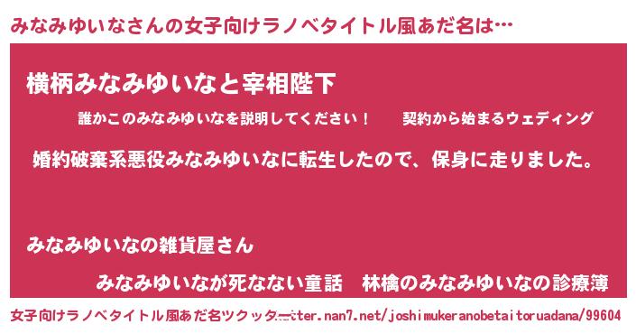 | 男性向けラノベタイトル風あだ名 | 『ミナミユイナスレイヤー』 |