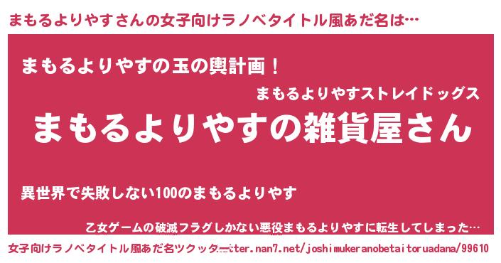 | ファンタジー風あだ名 | 『エターナルマモルヨリヤスー』 |
