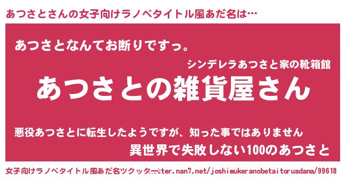 | 胡散臭い通販商品みたいなあだ名 | 『幸せが訪れる高級そうな皿…その名も「あつさと」』 |