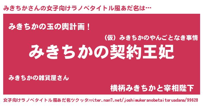 | 男性向けラノベタイトル風あだ名 | 『誰もが恐れるあのみきちかが、ぼくの専属メイドになるようです。』 |