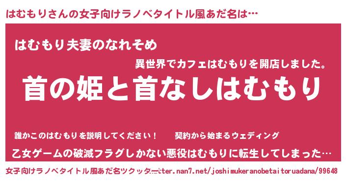 | 男性向けラノベタイトル風あだ名 | 『はたらくはむもりさま!』 |