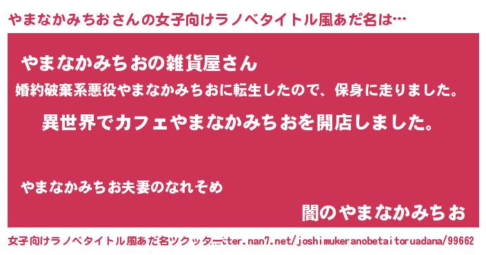 | 胡散臭い通販商品みたいなあだ名 | 『前代未聞の水素水…その名も「やまなかみちお」』 |
