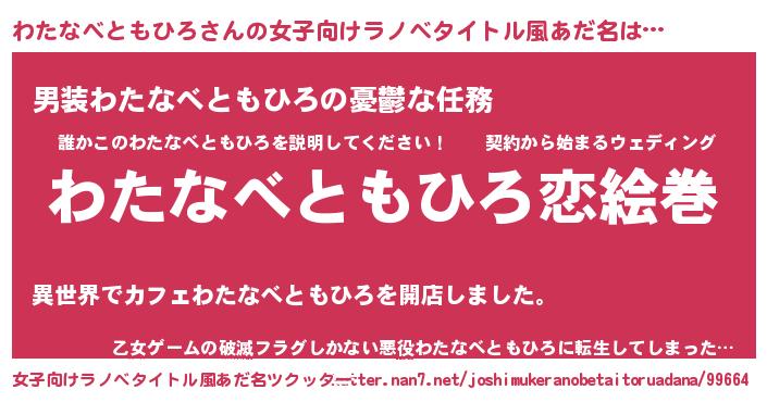 | 意味不明あだ名 | 『眠気覚ましガムわたなべともひろ味』 |