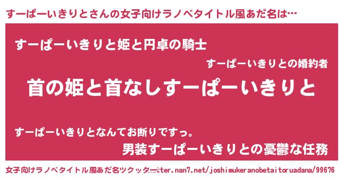 | 胡散臭い通販商品みたいなあだ名 | 『モテモテ間違いなし霊験あらたかなお札…その名も「すーぱーいきりと」』 |