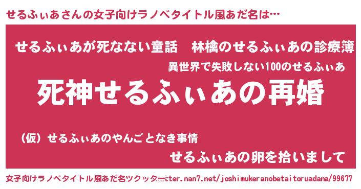 | ヒーロー風カッコイイあだ名 | 『慈愛の使者せるふぃあ』『仮面セルダー』 |