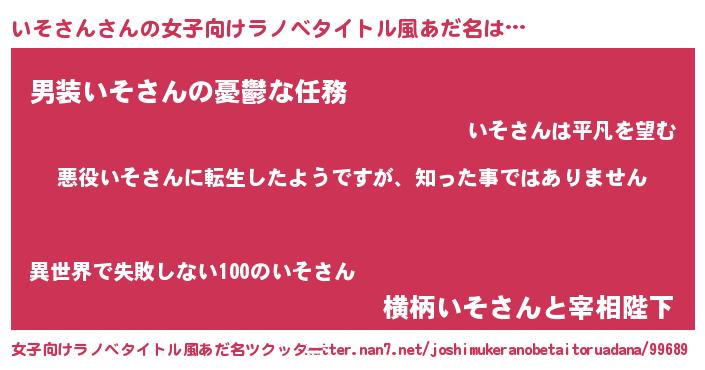 | 意味不明あだ名 | 『住所不定無職いそさん(59歳)』 |