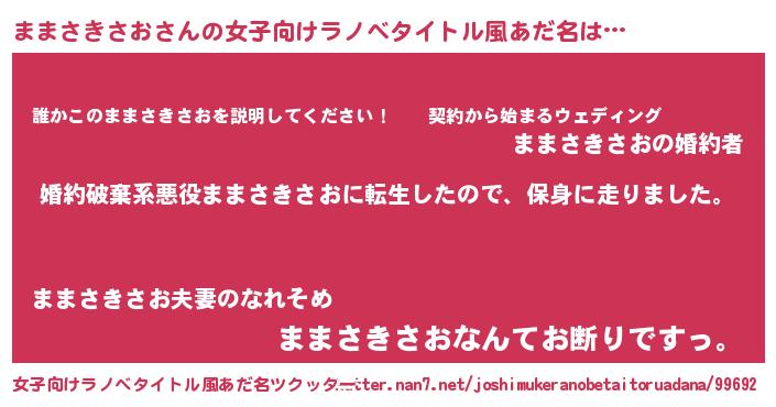| 料理風あだ名 | 『ままさきさおごはん』 |