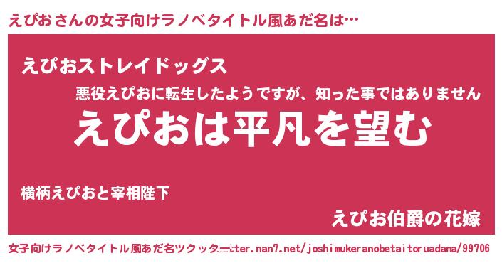| 胡散臭い通販商品みたいなあだ名 | 『信頼と実績のサプリメント…その名も「えぴお」』 |