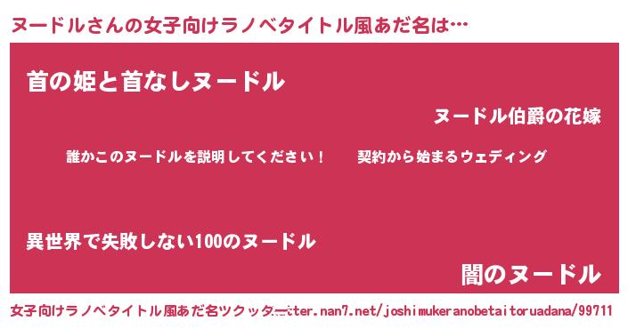 | 男性向けラノベタイトル風あだ名 | 『ヌードルアートオンライン』 |