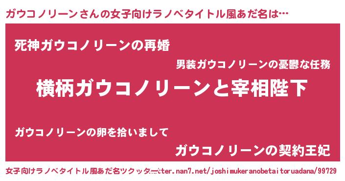 | 男性向けラノベタイトル風あだ名 | 『ガウコノリーンに滅ぼされるだけの簡単なお仕事です』 |