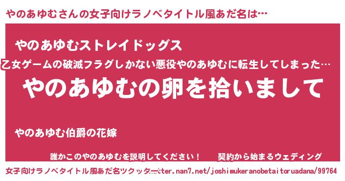 | 男性向けラノベタイトル風あだ名 | 『ダンジョンにやのあゆむを求めるのは間違っているだろうか』 |