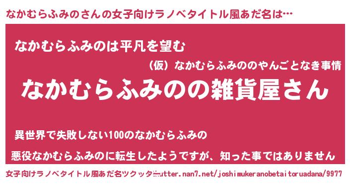 | 男性向けラノベタイトル風あだ名 | 『やはりなかむらふみのの青春ラブコメはまちがっている 』 |