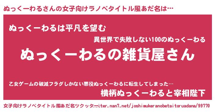 | 男性向けラノベタイトル風あだ名 | 『やはりぬっくーわるの青春ラブコメはまちがっている 』 |