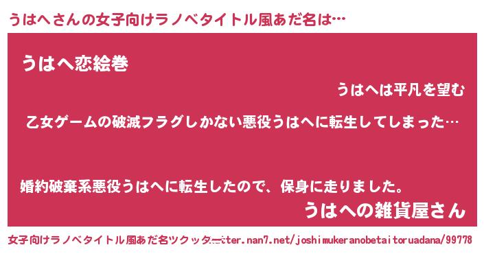 | 意味不明あだ名 | 『住所不定無職うはへ(14歳)』 |
