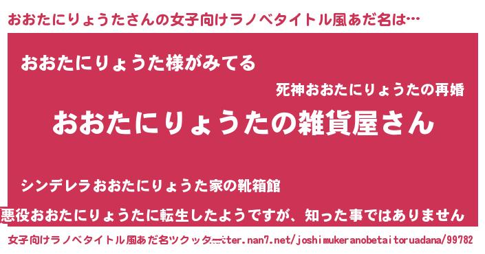 | 男性向けラノベタイトル風あだ名 | 『やはりおおたにりょうたの青春ラブコメはまちがっている 』 |