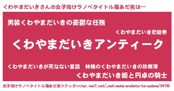 | 意味不明あだ名 | 『自称くわやまだいき』 |