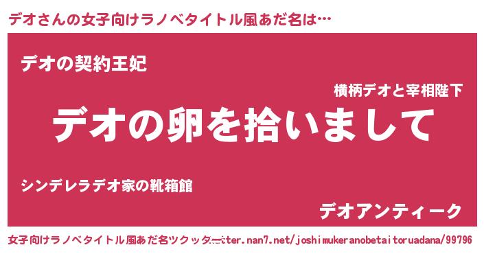 | 男性向けラノベタイトル風あだ名 | 『ダンジョンにデオを求めるのは間違っているだろうか』 |
