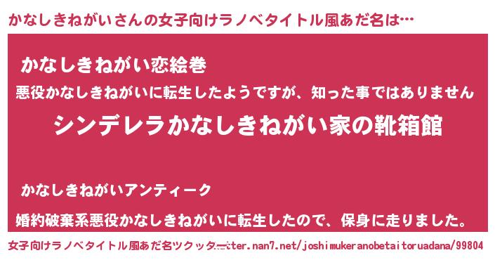 | ヘコむあだ名 | 『かなお』『かなしきねがい(笑)』 |