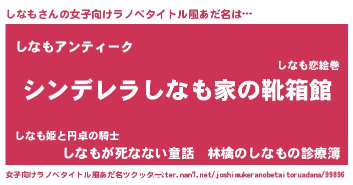 | 男性向けラノベタイトル風あだ名 | 『緋弾のシナモ』『魔法科高校のしなも』 |