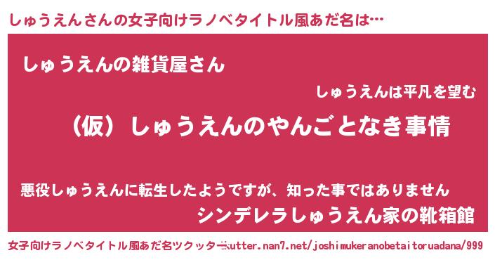 | 胡散臭い通販商品みたいなあだ名 | 『必ず成功する水晶球…その名も「しゅうえん」』 |