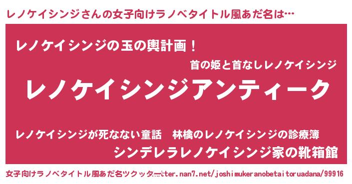 | 胡散臭い通販商品みたいなあだ名 | 『テレビで話題のアガリクス…その名も「レノケイシンジ」』 |