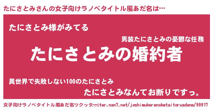 | ファンタジー風あだ名 | 『エターナルタニサトミー』『ゼタニトゥ』 |