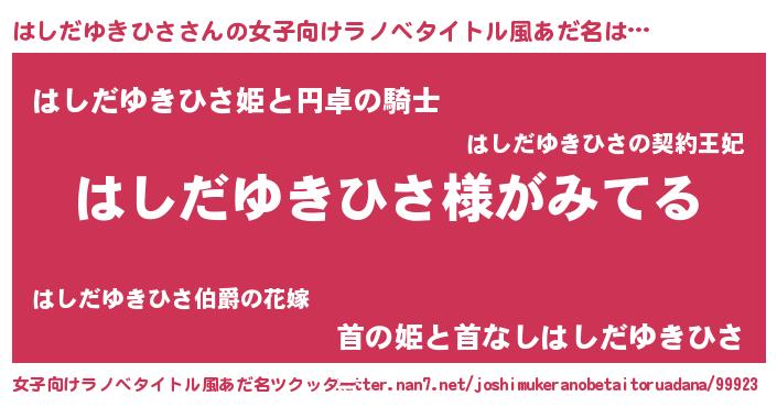 | 男性向けラノベタイトル風あだ名 | 『はしだゆきひさの嫁は女の子じゃないと思った?』 |