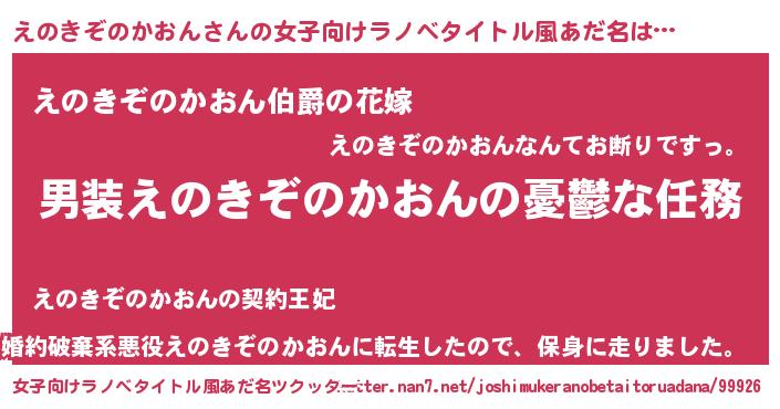 | 男性向けラノベタイトル風あだ名 | 『うちのえのきぞのかおんが世界を掌握している!』 |