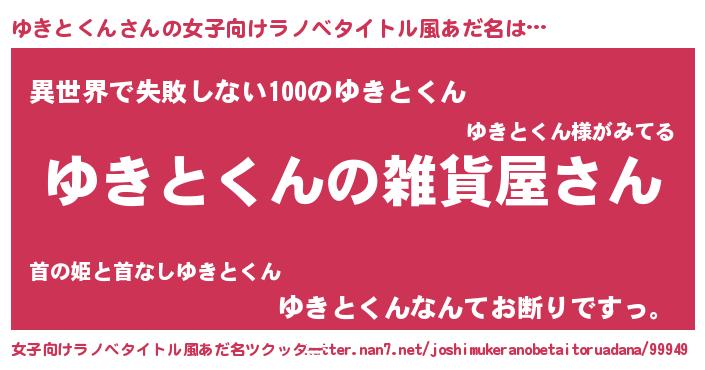 | 男性向けラノベタイトル風あだ名 | 『やはりゆきとくんの青春ラブコメはまちがっている 』 |