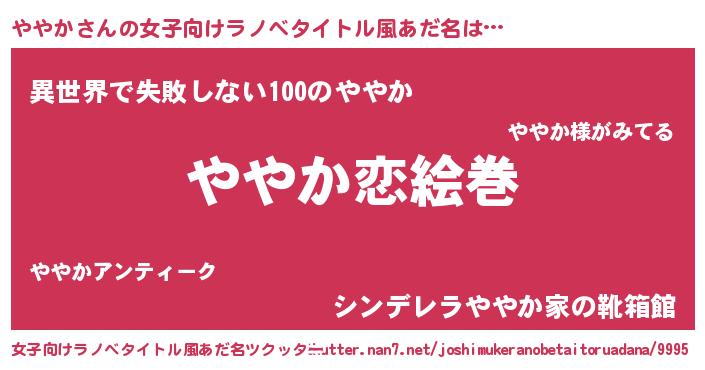 | ヒーロー風カッコイイあだ名 | 『愛の使者ややか』『ネオヤヤカ』 |