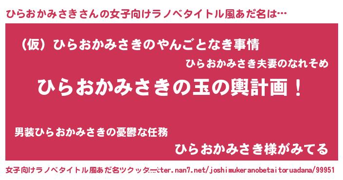 | 胡散臭い通販商品みたいなあだ名 | 『億万長者になれるブレスレット…その名も「ひらおかみさき」』 |