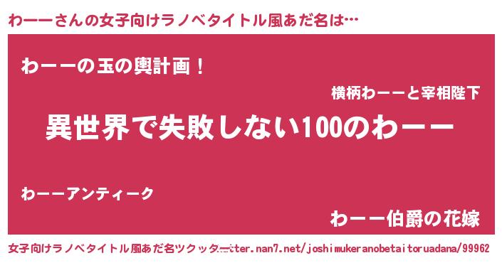 | ヒーロー風カッコイイあだ名 | 『ネオワーー』『ウルトラわーーマン』 |