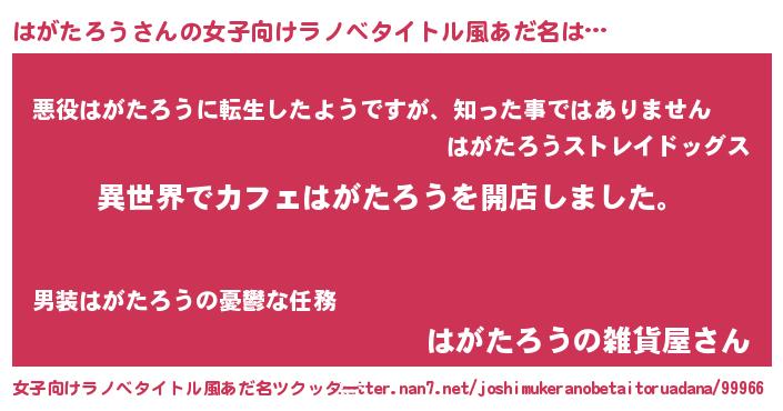 | 男性向けラノベタイトル風あだ名 | 『誰もが恐れるあのはがたろうが、ぼくの専属メイドになるようです。』 |