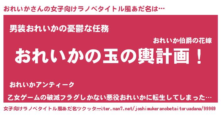 | 胡散臭い通販商品みたいなあだ名 | 『あなたにだけ特別に提供する世界で10本だけ現存している希少なブランデー…その名も「おれいか」』 |