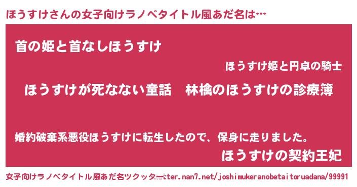 | 男性向けラノベタイトル風あだ名 | 『魔弾の王とほうすけ』『ほうすけの憂鬱』 |