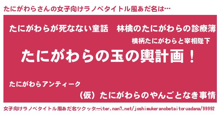 | 男性向けラノベタイトル風あだ名 | 『転生したらたにがわらだった件』 |