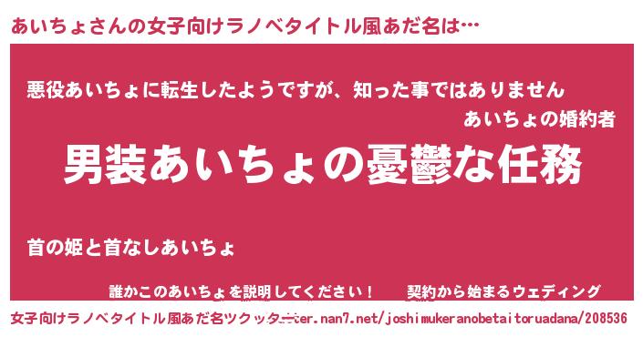 | 意味不明あだ名 | 『住所不定無職あいちょ(65歳)』 |