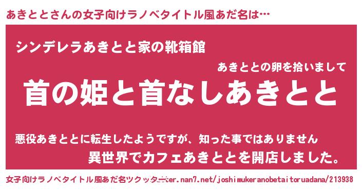 | 男性向けラノベタイトル風あだ名 | 『はたらくあきととさま!』 |
