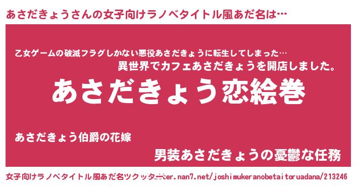 | 男性向けラノベタイトル風あだ名 | 『ノーゲーム・ノーアサダキョウ』 |